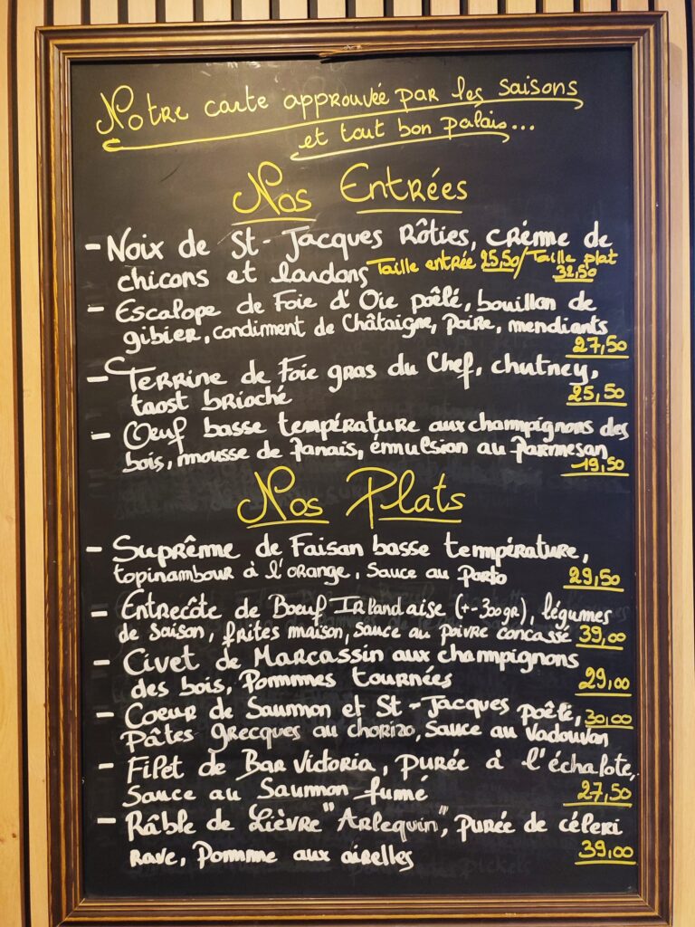 Tableau évolutif, changeant régulièrement selon les saisons et l’inspiration du moment du chef.
