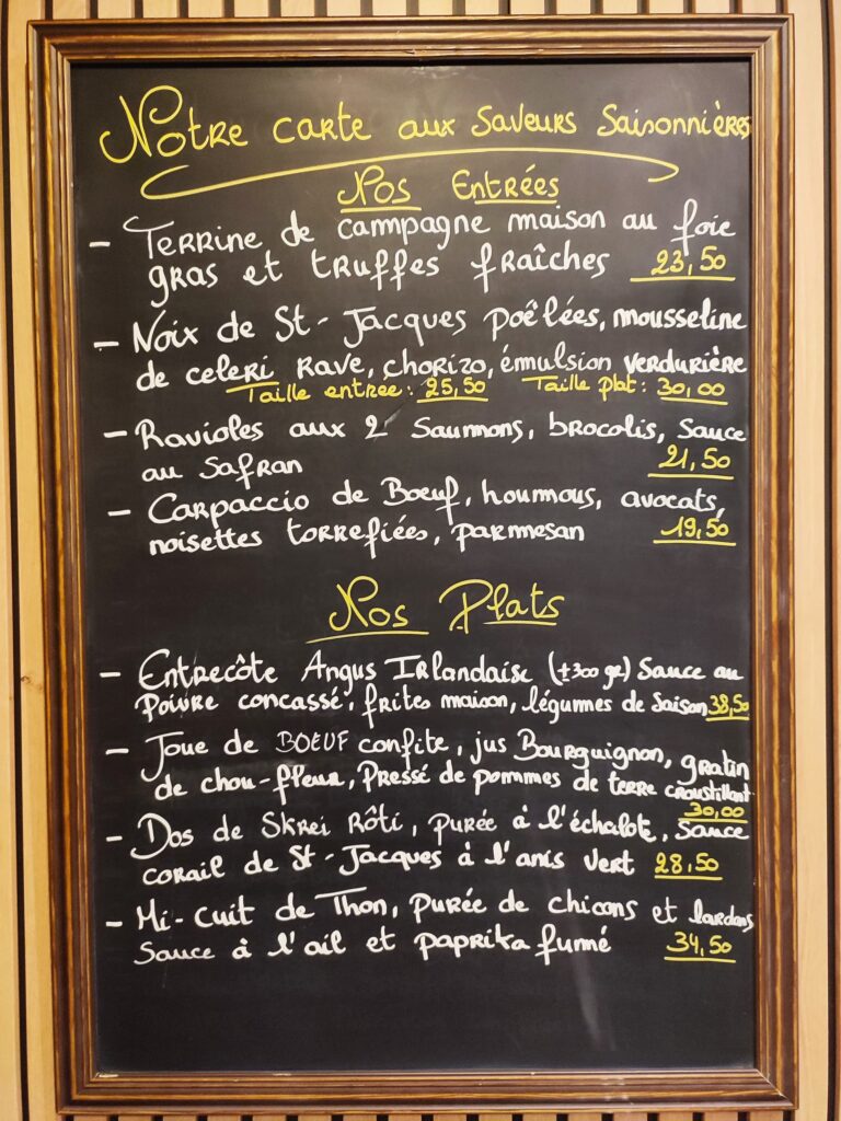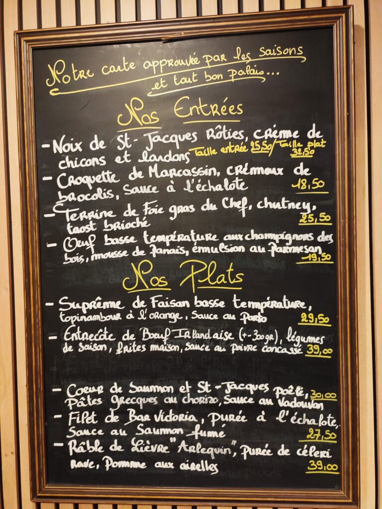 Tableau évolutif, changeant régulièrement selon les saisons et l’inspiration du moment du chef.